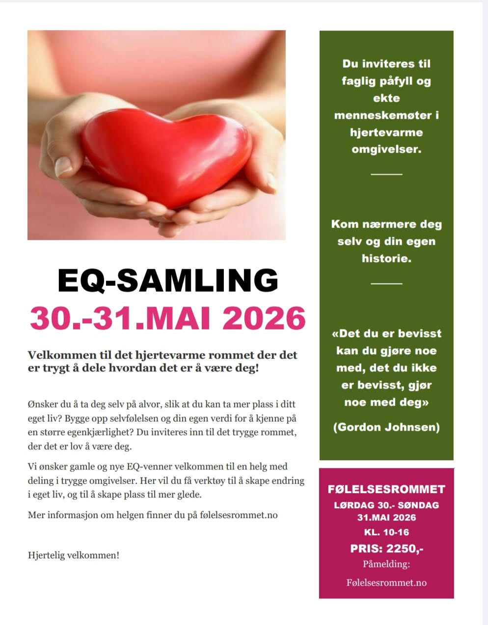 Følelsesrommet inviterer til EQ-samling lørdag 30. - søndag 31.mai fra kl. 10-16.